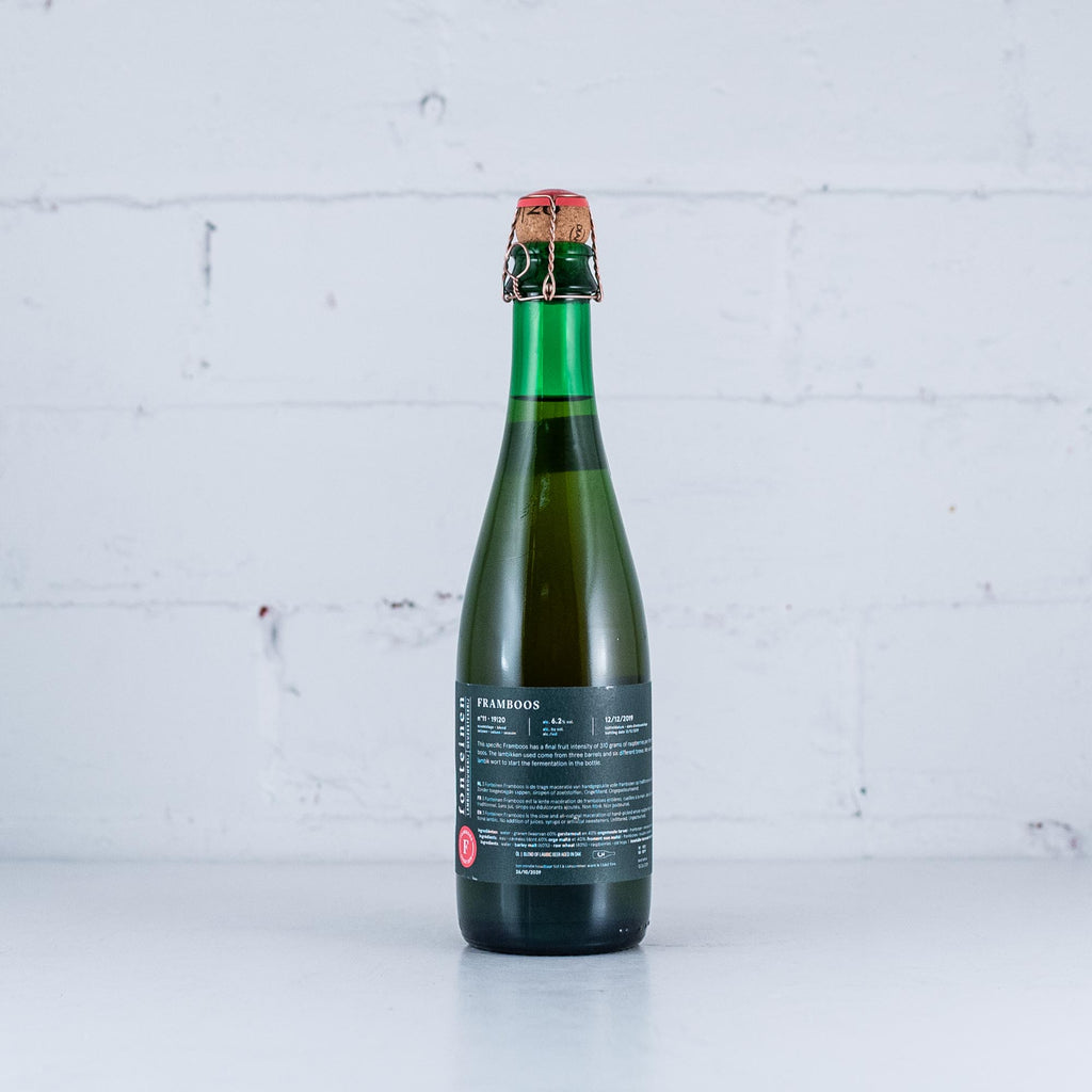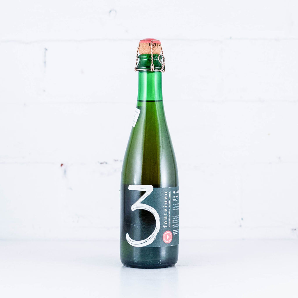 "3 Fonteinen Framboos is the result of macerating hand-picked whole raspberries on young lambic for at least four months, in a proportion of one kilogram of fruit per litre of lambic. The raspberry lambic is then blended again with more young lambic to obtain a minimum intensity of 35% fruit, and is bottled immediately afterwards. These bottles are then stored in our cellars for at least five months so that the raspberry lambic can develop into a beautiful, traditional, and vibrant Framboos. With a abundant forest fruit nose as it warms in the glass, 3 Fonteinen Framboos will age perfectly but may lose some of the vibrant colours and forest fruit aromas.