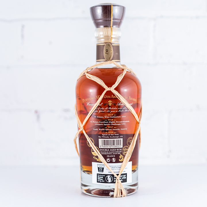 This centuries-old “double ageing“ process imparts incredible smoothness and complexity. It unveils a sophisticated palate of chocolate, vanilla, ripe banana, roasted coconut and a hint of fresh mango notes. With a remarkably long finish, Plantation XO 20th Anniversary is truly a rum to savor." - Plantation